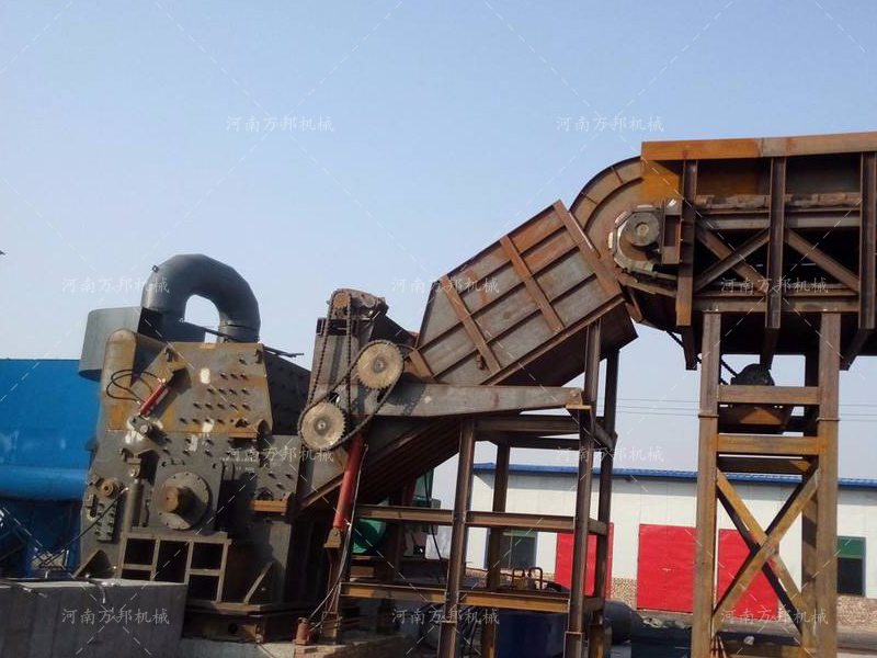 輕薄料破碎在流程上物料通過(guò)設(shè)備配置的上料輸送機(jī)物料被送入設(shè)備滑料倉(cāng)內(nèi)通過(guò)強(qiáng)制壓輥擠壓及撥料系統(tǒng)物料被均勻的送入設(shè)備主機(jī)腔內(nèi),在主軸的高速旋轉(zhuǎn)過(guò)程中通過(guò)錘頭擊打作用物料被初級(jí)破碎,經(jīng)過(guò)破碎后的物料在機(jī)腔被通過(guò)滾輪壓制機(jī)高速擊打被揉成球狀金屬顆粒,在反復(fù)擊打作用下達(dá)到出料標(biāo)準(zhǔn)的廢舊金屬通過(guò)底部篩網(wǎng)被排出機(jī)腔,排出的成品原料通過(guò)出料輸送被送至分選系統(tǒng)從而將廢舊金屬中的雜質(zhì)、廢鐵、廢銅、廢料進(jìn)行分選得到高成分的優(yōu)質(zhì)原材料被用于再生冶金加工。輕薄料破碎生產(chǎn)線在設(shè)備配置上由一臺(tái)上料輸送機(jī)、一臺(tái)輕薄料破碎機(jī)主機(jī)、一條出料輸送機(jī)、分選皮帶輸送機(jī)若干(根據(jù)分選等級(jí)或分選設(shè)備配置匹配)、配電柜、除塵器一套組成。
