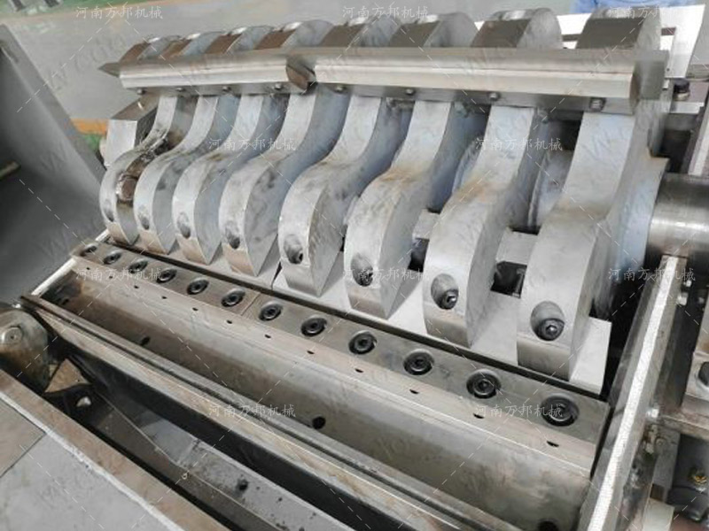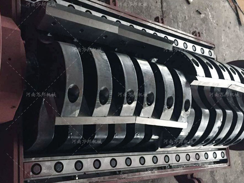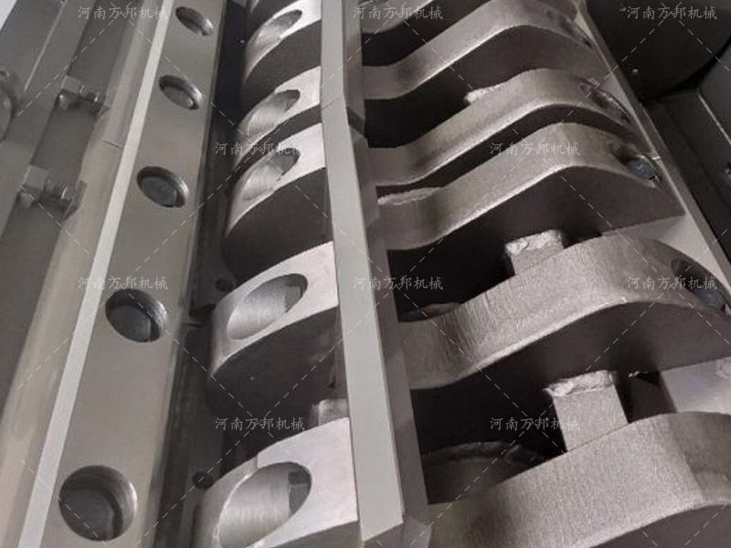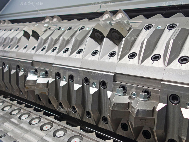 4、刀架優(yōu)化設計,刀架螺旋分布,可分散碎料時受力度,減輕碎料時沖擊力,使得每刀的破碎剪切力更大。