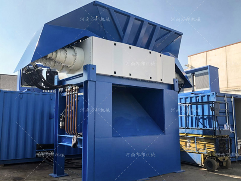河南萬邦機(jī)械液壓金屬撕碎機(jī)又叫做雙軸破碎機(jī),雙軸金屬破碎機(jī),該機(jī)為河南萬邦機(jī)械依據(jù)市場需求而研究開發(fā)的一種新型剪切式破碎機(jī),該機(jī)主要作為金屬粗碎設(shè)備用于對(duì)報(bào)廢汽車外殼、彩鋼瓦、油漆桶等大型廢舊空體物料進(jìn)行破碎加工,所加工物料根據(jù)厚度及材質(zhì)種類不同呈顆粒狀或片狀結(jié)構(gòu),該機(jī)相對(duì)金屬粉碎機(jī)在具有:噪音低、粉塵少、適用性廣、破碎比大的優(yōu)勢。在設(shè)備適用性上來說金屬撕碎機(jī)主要作為金屬粉碎機(jī)前道粗碎設(shè)備用于對(duì)金屬粉碎機(jī)無法破碎的大型金屬進(jìn)行預(yù)處理已達(dá)到細(xì)碎加工設(shè)備處理要求。在設(shè)備構(gòu)成上金屬撕碎機(jī)主要由撕碎刀片組、承載箱體、箱體支架、進(jìn)料系統(tǒng)、動(dòng)力系統(tǒng),電器控制系統(tǒng)組成,在破碎大型廢舊金屬過程中該機(jī)獨(dú)有的動(dòng)力保護(hù)機(jī)構(gòu)可有效的防止設(shè)備超載造成的設(shè)備損壞。河南萬邦機(jī)械金屬撕碎機(jī)圖片如下: